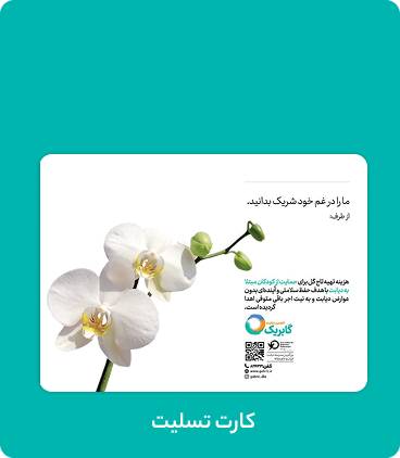 کارت تبریک و تسلیت الکترونیک یکی از روش های حمایت از گابریک است که این امکان را فراهم می آورد بتوانیم در مناسبت‌های مختلف از طریق خرید کارت با موضوعات تبریک مناسبتی (اعیاد، روز پدر، روز مادر، تولد و…) و تسلیت و همدردی، علاوه بر مشارکت در فعالیت های انساندوستانه به یاد عزیزان خود کار خیر کنیم و برایشان، کارتی زیبا بخریم.