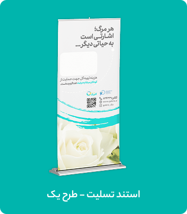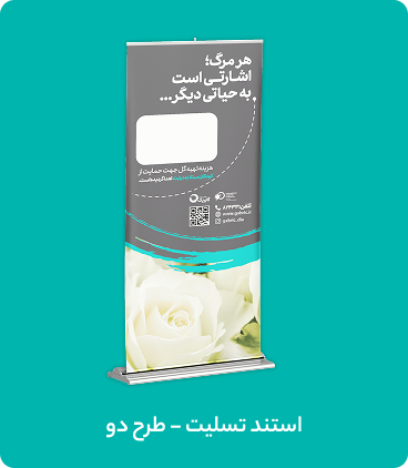 • شایان ذکر است به همراه استند، یک عدد کارت تسلیت با مشخصات شما به خانواده متوفی ارائه می گردد.